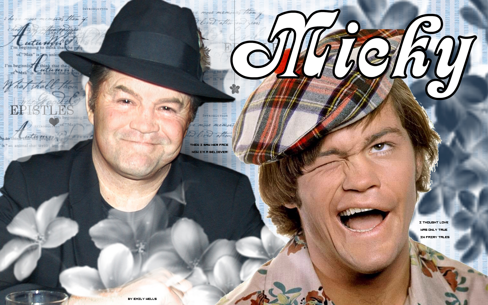 Inspired by Micky Dolenz calling my emails “epistles”. Micky then and now–photo I took of Micky at an evening out in 2006, photo of Micky from 1965 [photographer unknown to me].